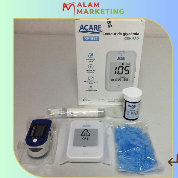جهاز قاريء الجلوكوز Acare هو جهاز مصمم لقياس مستوى الجلوكوز (السكر) في الدم. يُستخدم هذا النوع من الأجهزة بشكل شائع من قبل الأشخاص المصابين بالسكري لمراقبة مستويات الجلوكوز لديهم بهدف إدارة حالتهم بشكل أفضل. يعمل الجهاز مع شرائح اختبار يتم وضع قطرة من الدم عليها، ومن ثم يعرض الجهاز قراءة لمستوى السكر في الدم خلال بضع ثوان.