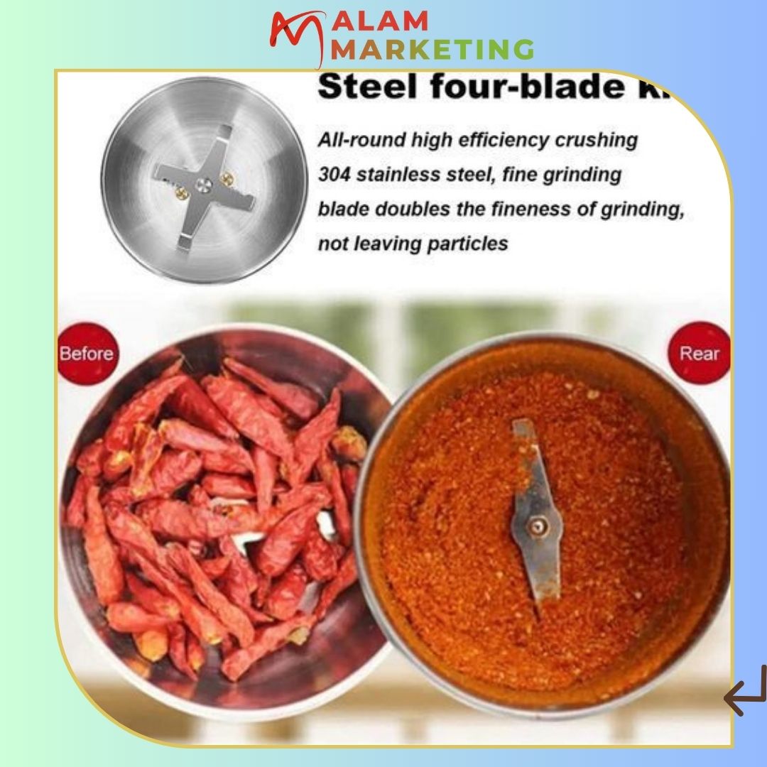 تُعد هذه المطحنة الكهربائية المنزلية المصنوعة من الفولاذ المقاوم للصدأ متينة وسهلة الاستخدام في المنزل. تتميز بغطاء شفاف جميل يتيح لك مراقبة عملية الطحن بسهولة، كما أنها سهلة التنظيف بعد الاستخدام.