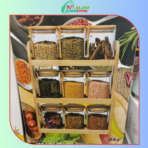 Ensemble de 9 bocaux à épices en verre avec support