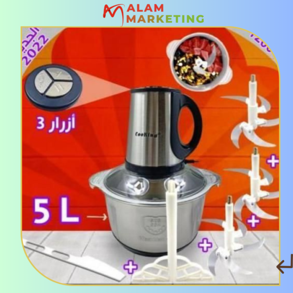 Hachoir électrique à viande 5 lames en acier Inoxydable avec 5 Litre/1200W