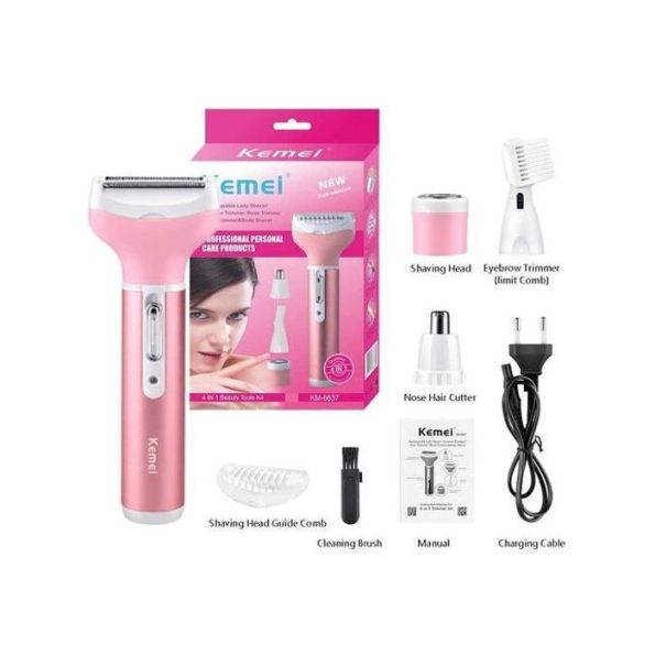The Kemei 4-in-1 Epilator is a versatile hair removal tool designed for women, offering various attachments to cater to different areas of the body. Here’s a breakdown of the features and functions you can expect from this device: